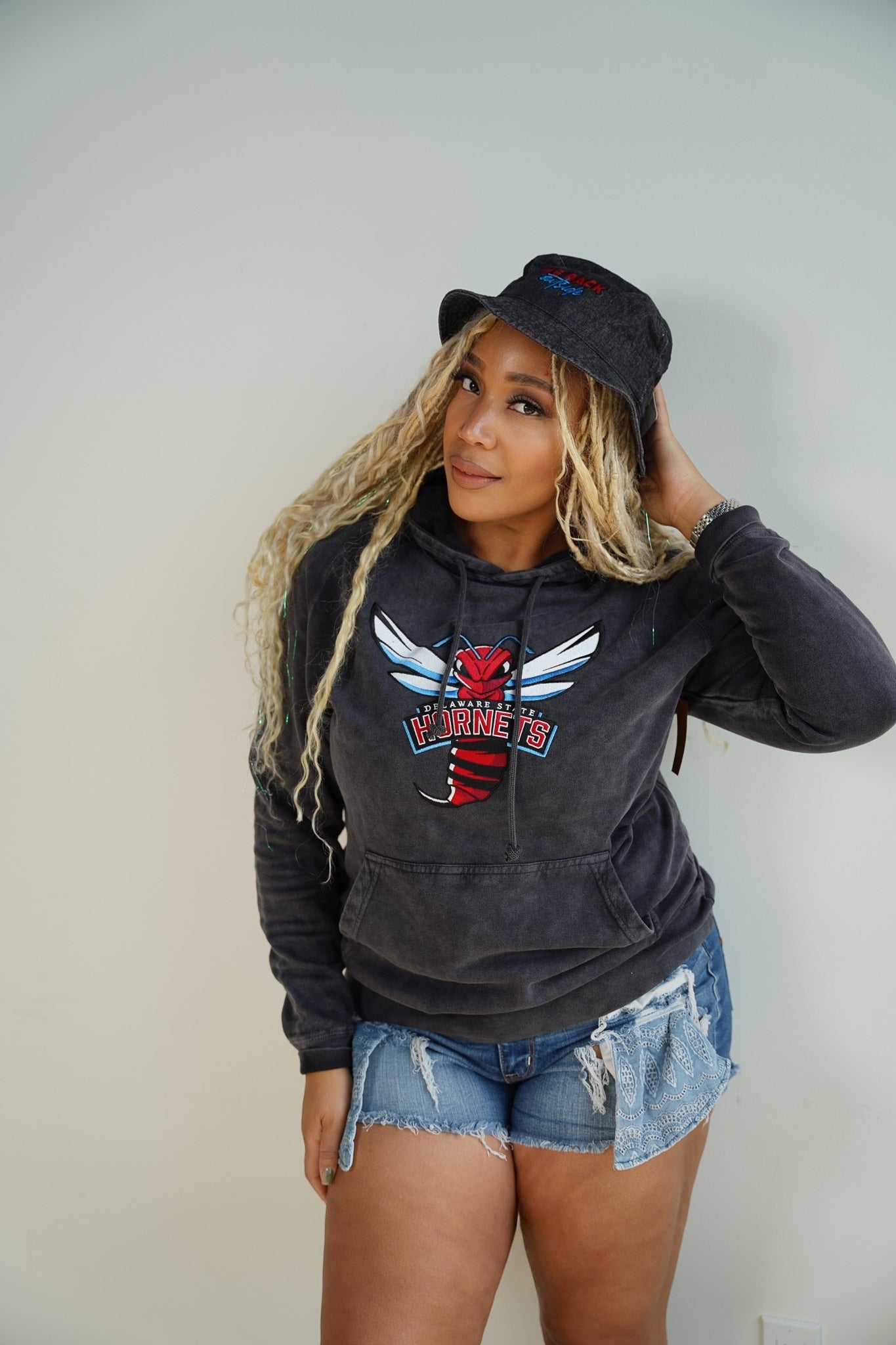 “Hornets” Black Denim Bucket Hat